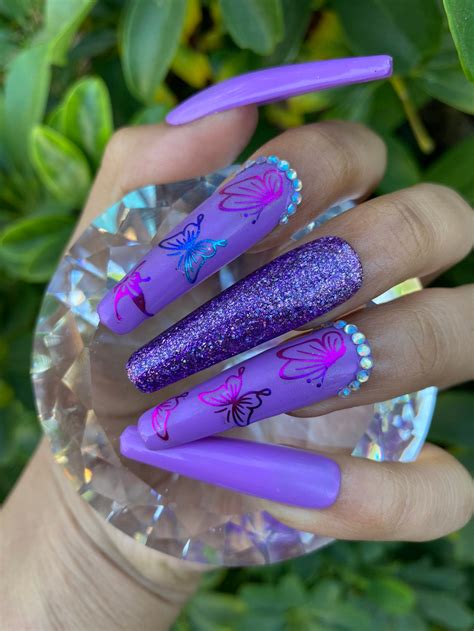 Clear with Rhinestone Gel Nails CoffinClear Flower Petals Coffin NailsNail Art Butterfly Clear Coffin