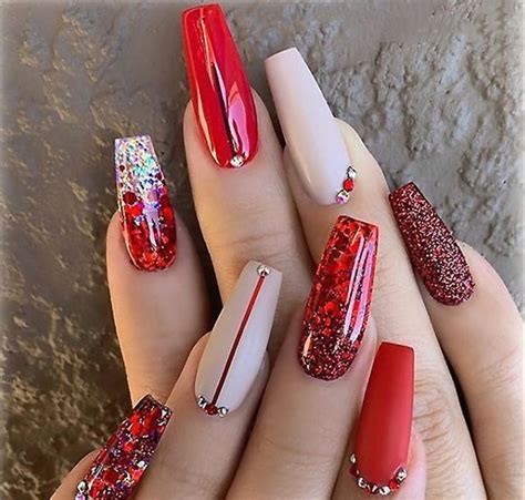 red coffin nails glitter