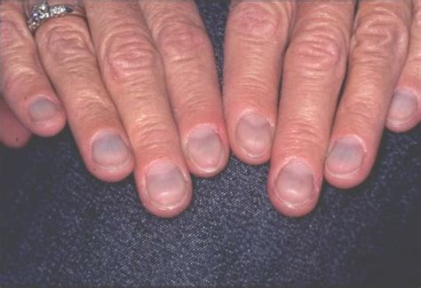 4 rows · 30/04/2020 · Not having enough vitamin B-12 can cause nails to turn dark, thin and possibly spoon shaped. ...Toenails that turn gray may be a symptom of malnutrition, lung disease, or even arthritis. If you are allergic to certain chemicals in cleaning products or makeup, your toenails may turn a greenish color. Green on your nails may also mean you have an …20/02/2020 · Gray Nails: One possible cause of blue-gray nail discoloration is using the drug minocycline. This broad-spectrum antibiotic has been found to turn nails a light blue-gray color. However, there are many other causes of nail discoloration as well, including fungal infection , chronic diseases and the use of various medications.your hands often being in water or cleaning products. a fungal nail infection. Nail problems can sometimes be a symptom of a more serious or long-term condition, such as: nail psoriasis. iron deficiency anaemia. an underactive thyroid or overactive thyroid. diabetes. heart, lung …19/01/2021 · Melanin deposits are caused by two primary processes, which have different causes. Melanocytic activation can be caused by: pregnancy racial variations trauma carpal tunnel syndrome nail biting...11/10/2015 · When healthy fingernails begin to change color or texture, one of the most common underlying causes is nail fungus, which can cause the nails to crack, peel, and change color and texture. Common disorders like thyroid disease can also cause abnormalities in the toenail and fingernail beds, often producing dry brittle nails that crack and split easily .Grey nails – can be caused by certain medications. Brown nails – can indicate a thyroid disease or malnutrition. Fingernails that are half white at the bottom and half brown near the tips can be a sign of kidney failure, AIDS or appear after chemotherapy.07/05/2014 · It’s usually caused by lack of iron in your blood. Increase green leafy vegetables and beans to increase iron levels. Severely pale nails can be indicator of early diabetes or liver disease which can lead to impaired blood flow. If diagnosed early, diabetes can often be controlled with diet changes.13/04/2022 · What is cyanosis? Cyanosis is when skin, nailbeds, or lips turn a shade of blue, purple, or grayish. This is due to blood carrying less oxygen, which means bodily structures such as organs might not be receiving enough oxygen. It is rarely considered life threatening, but finding out the underlying cause should still be considered a priority.
